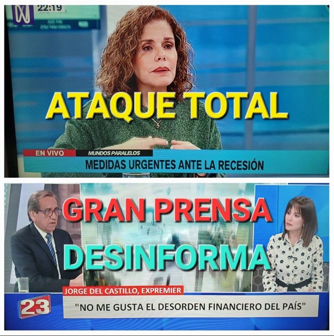 Anoche dos programas de la GRAN PRENSA, Canal N (Mundos Paralelos con Pancho de Piérola) y Panamericana Televisión (2023 en 24 Horas con Mávila Huertas —a la misma hora y en vivo— el primero entrevistaba a Meche Aráoz y el otro canal entrevistaba al mentado Jorge del Castillo. Todo bien bonito y confortable.