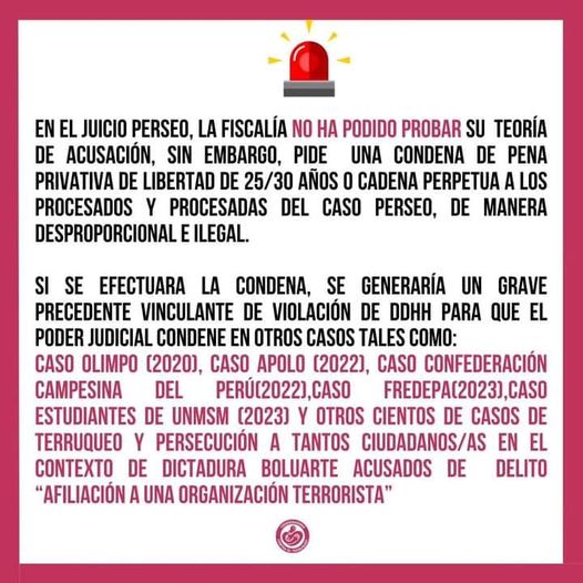 Desde CCT, expresamos nuestra profunda preocupación sobre lo que pasaría si es que condenarán a los injustamente procesados del #CasoPerseo.