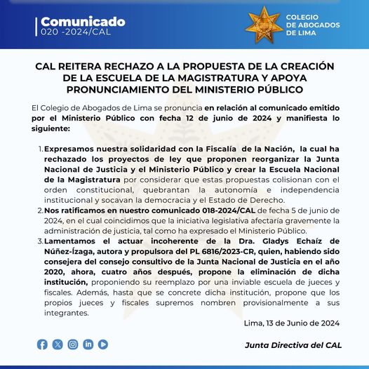 Perú: Colegio de Abogados de Lima condena creación de falsa Escuela Nacional de la Magistratura