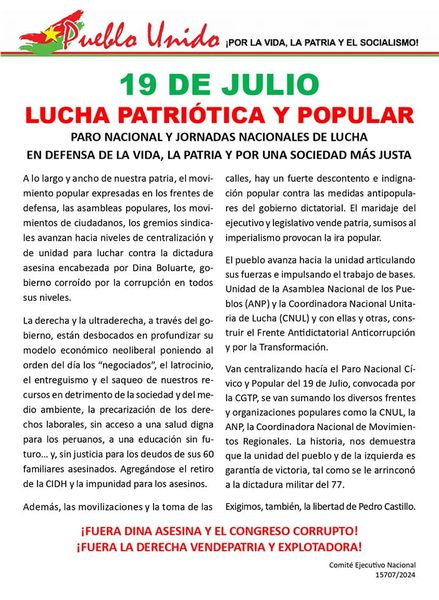 Perú: 19 de julio o 25-29 de julio: una encrucijada para el movimiento popular y la izquierda