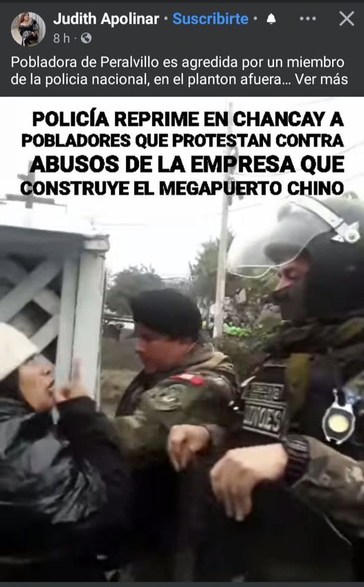 Represión policial contra pueblo de chancay durante manifestaciones pacíficas por justicia ante atropellos de Cosco Shiping, empresa china que construye el Mega puerto.