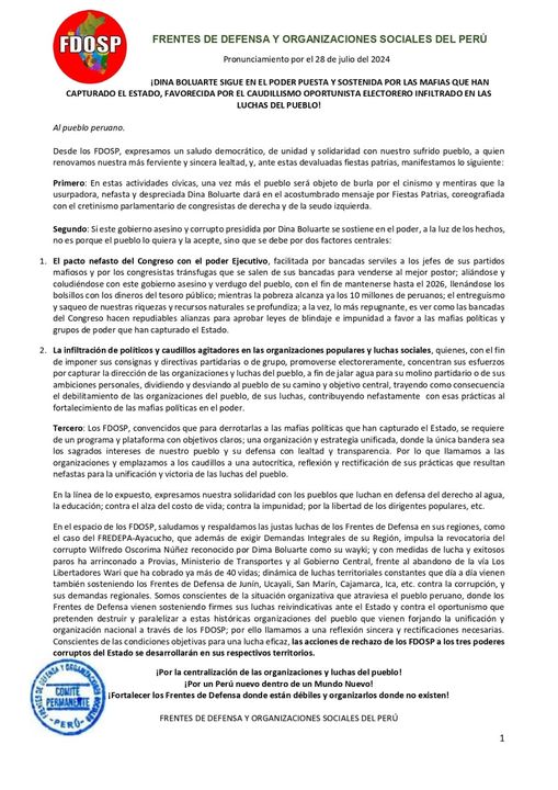 Y que el eje de la lucha antidictadura es desenvolverla en cada territorio, vía los frentes de defensa.
