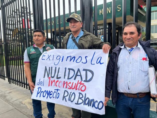 ☑️Exigen al Ministro de Energía y Minas, Rómulo Mucho, que declare la nulidad de las concesiones del Proyecto Río Blanco, por violación de la consulta previa.