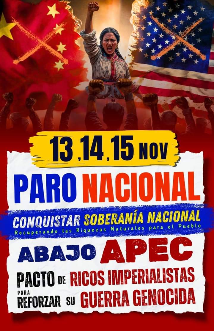 Denunciamos la tercera instalación de la APEC (2024) en territorio del pueblo peruano, por ser el instrumento del imperialismo donde se toman acuerdos con el fin de reforzar el financiamiento, suministro y sostenimiento de la tercera guerra mundial inter-imperialista (EEUU vs China), actualmente en curso; con el que oprimen, abiertamente, la soberanía de nuestra nación al usar nuestro territorio como su patio trasero donde formalizan pactos y negociados multimillonarios para ganancia de los imperialistas y miseria para el pueblo trabajador del Perú. De esta forma, estos grandes burgueses de las potencias imperialistas agudizan nuestra condición como país semi colonia.