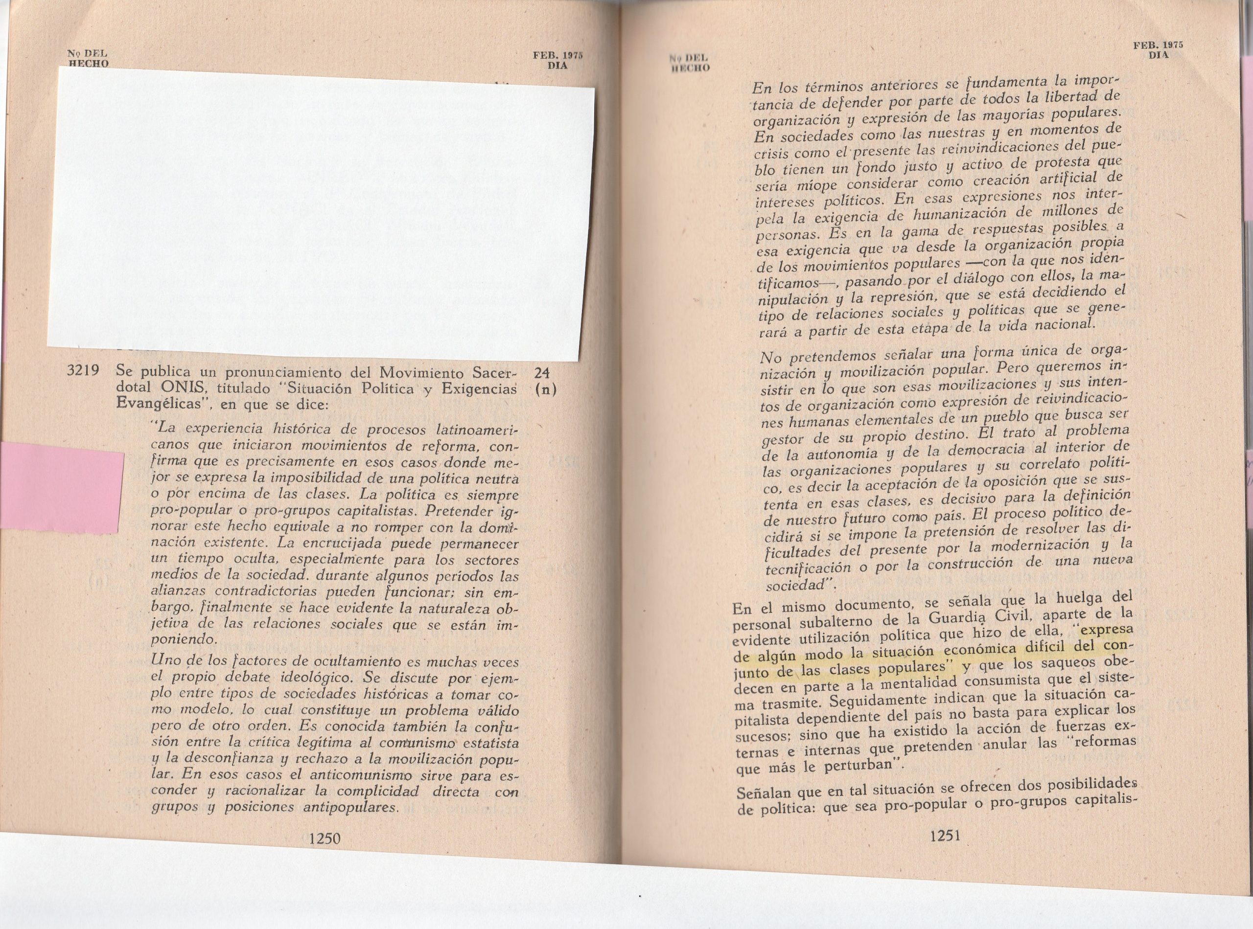 POR OTRO LADO, EL MOVIMIENTO SACERDOTAL DE LA IGLESIA CATOLICA, ONIS, TAMBIEN LO DIJO EN UN PRONUNCIAMIENTO QUE PUBLICO CUANDO DIJO QUE LA PROTESTA DE LA GUARDIA CIVIL EXPRESA DE ALGUN MODO LA SITUACION ECONOMICA DIFICIL DEL CONJUNTO DE LAS CLASES POPULARES.