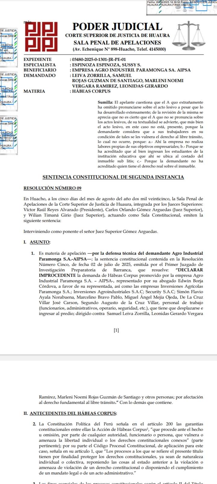 Jueces Superiores de Huacho no cedieron ante el poder económico y político del grupo Wong, propietario de la empresa Agro Industrial Paramonga S.A., AIPSA, y CONFIRMARON SENTENCIA DE JUZGADO DE BARRANCA, que DESESTIMA su pretensión de entrar por la ventana a apropiarse del local antiguo del Colegio José Pardo y Barreda de Huayto, UGEL No. 16.
